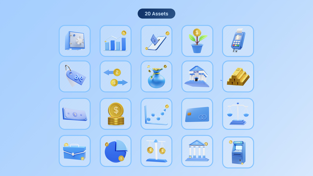 20 Assets Finance & Business 3D Icons